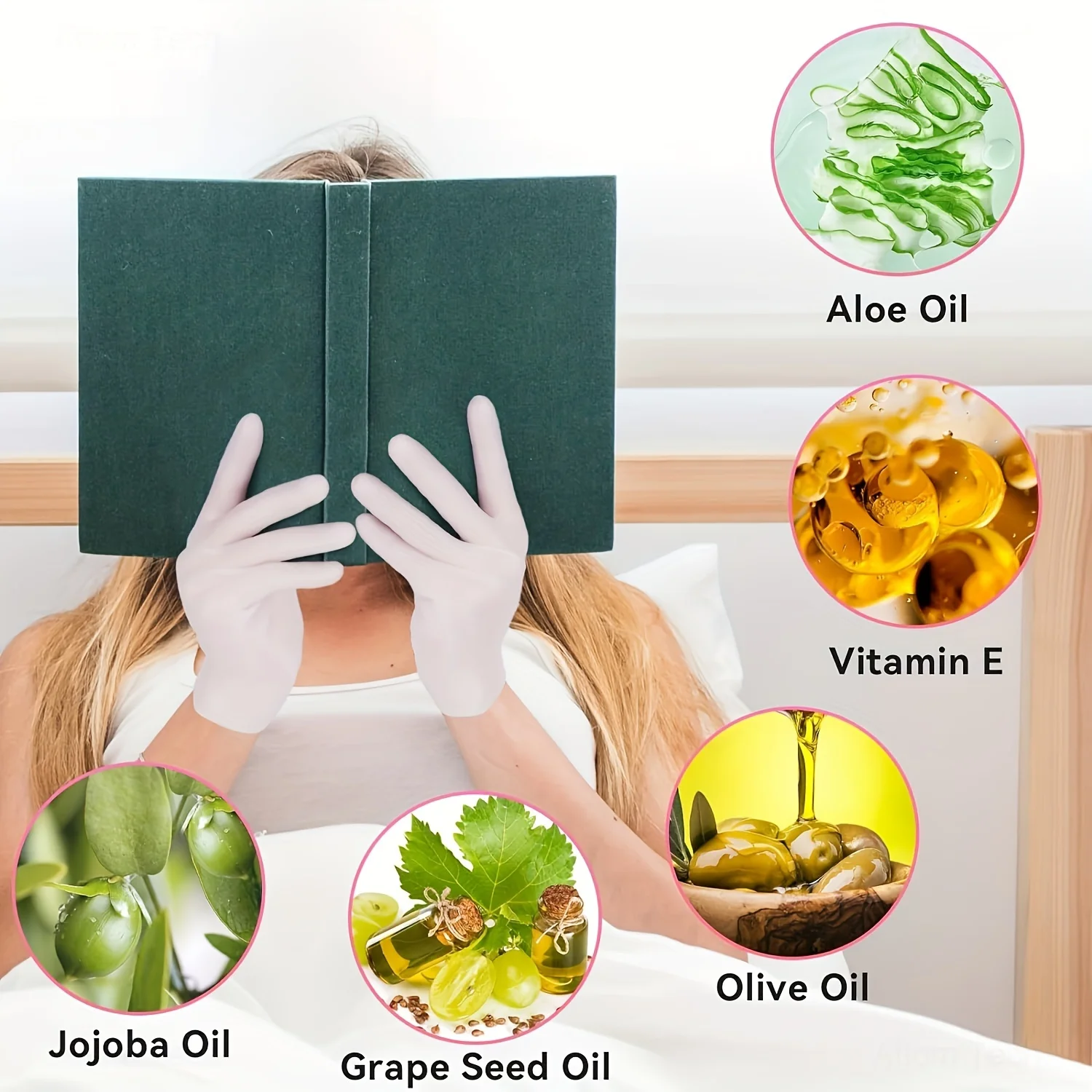 Spa gel moisturizing gloves with built-in essential oils & vitamins. Softens dry hands, reusable, and perfect for daily hydration.