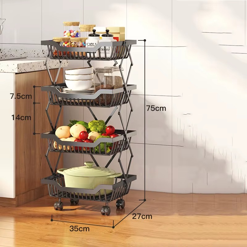 The Stretch Fruit Basket Stand is a multifunctional, collapsible metal storage solution designed for kitchens, pantries, bathrooms, bedrooms, and offices. Made from durable carbon steel with a powder-coated finish, this stand is rustproof, sturdy, and built to last. Its foldable design requires no installation—just pull up, secure the side buckles, and it’s ready to use.