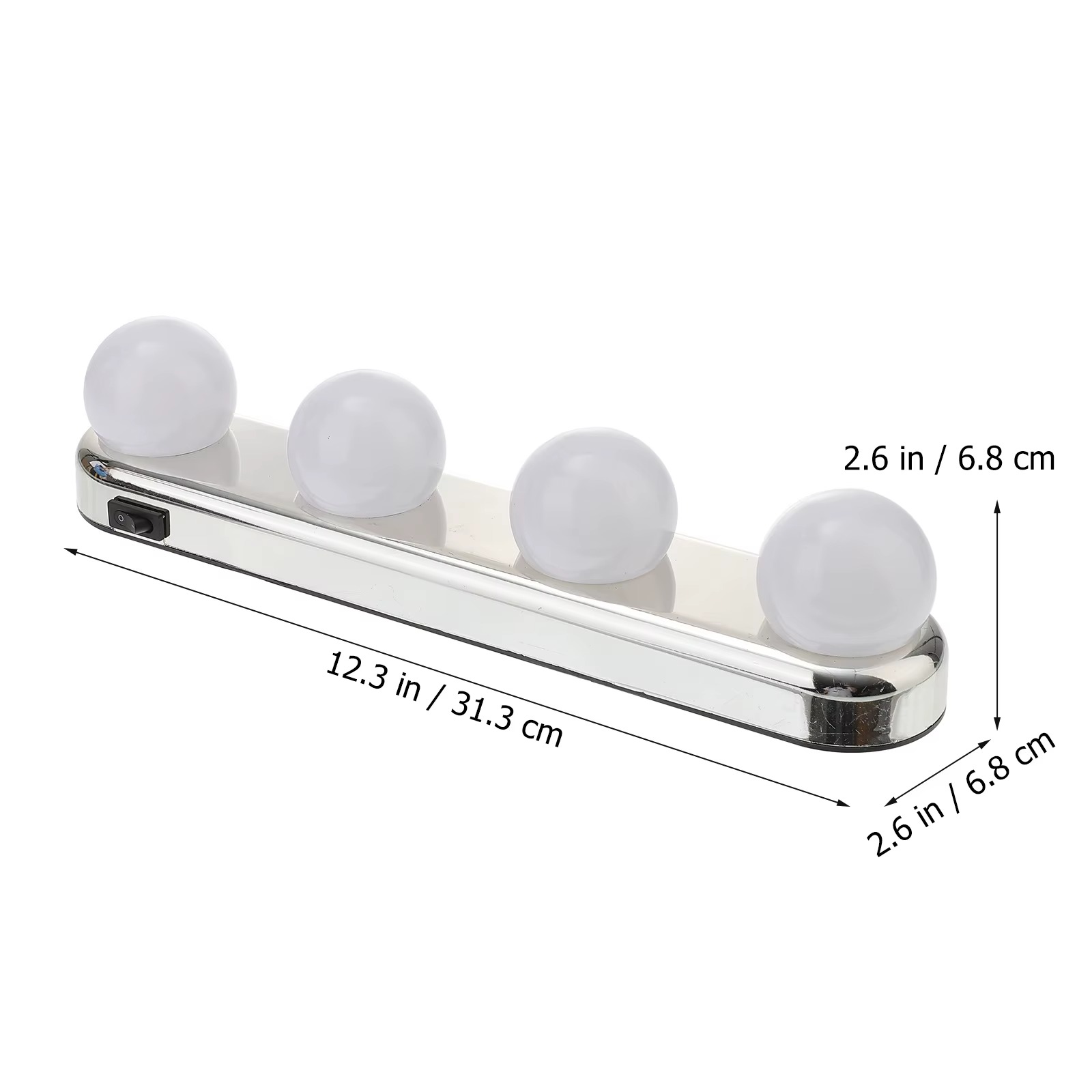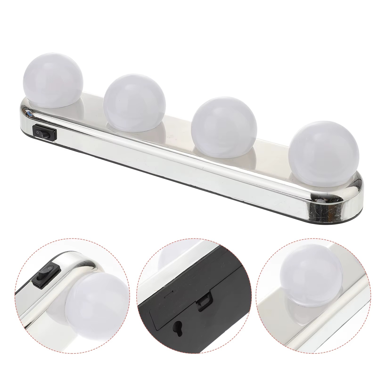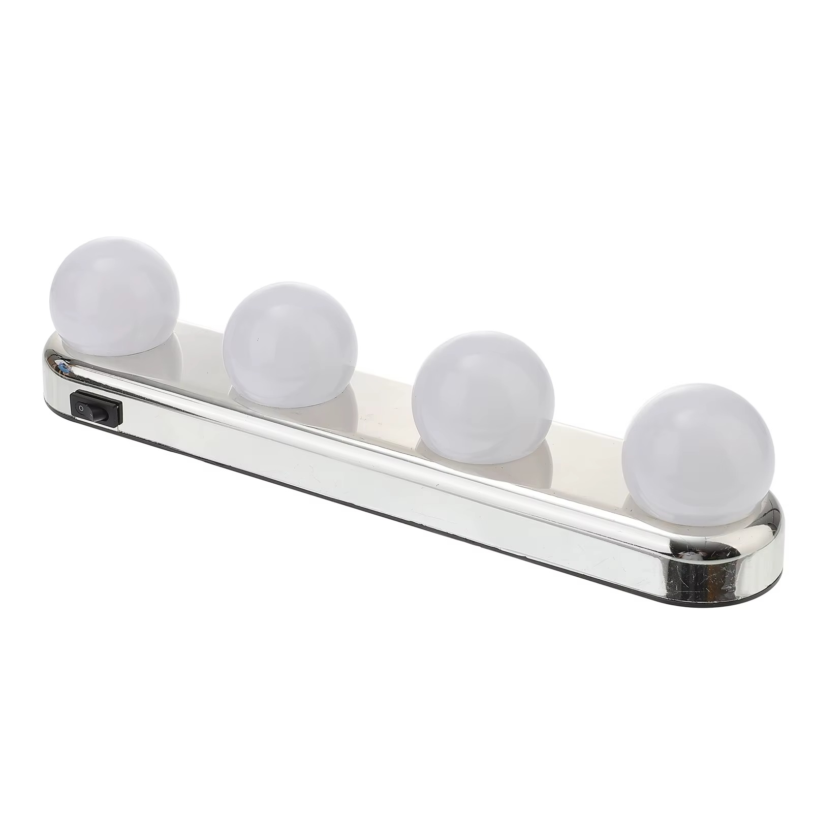 Product Description Gives you the most natural even illumination Cordless design installs in seconds using included suction cups no tools or wiring required Portable Design Take it off the mirror and on the road easily fits in a suitcase or duffel bag Stay cool bulbs last up to 50 000 hours Perfect lighting to conceal blend and apply plus tweeze with ease Allow you blend in your bathroom or bedroom for a seamless look Flexibility for your make up at home business travel or anywhere you want Compact size portable to carry Specifications Battery 4x AA batteries Not Included Material plastic and metal Color Silver
