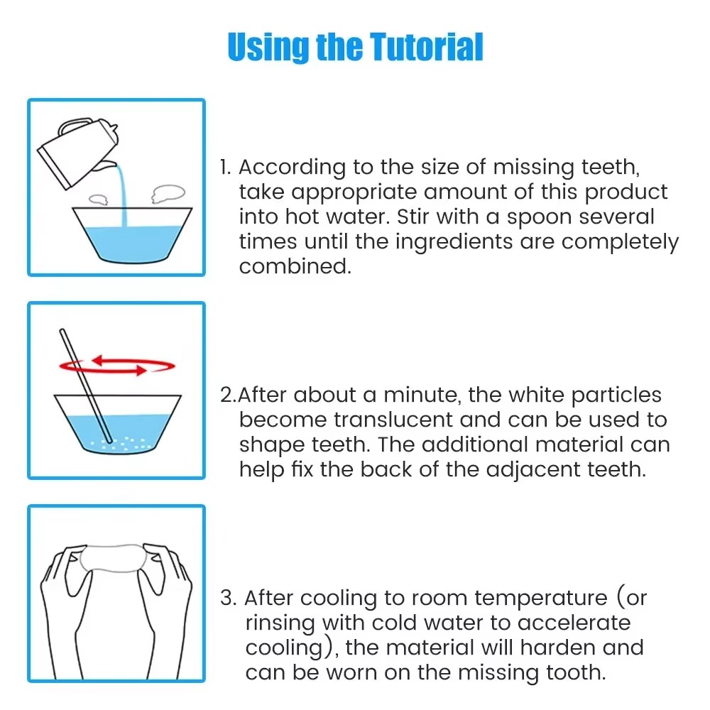 3. Can be applied with hot water to re-mold into the shape of a tooth to fill in gaps left on broken or missing teeth, which can make you smile with beauty and confidence.