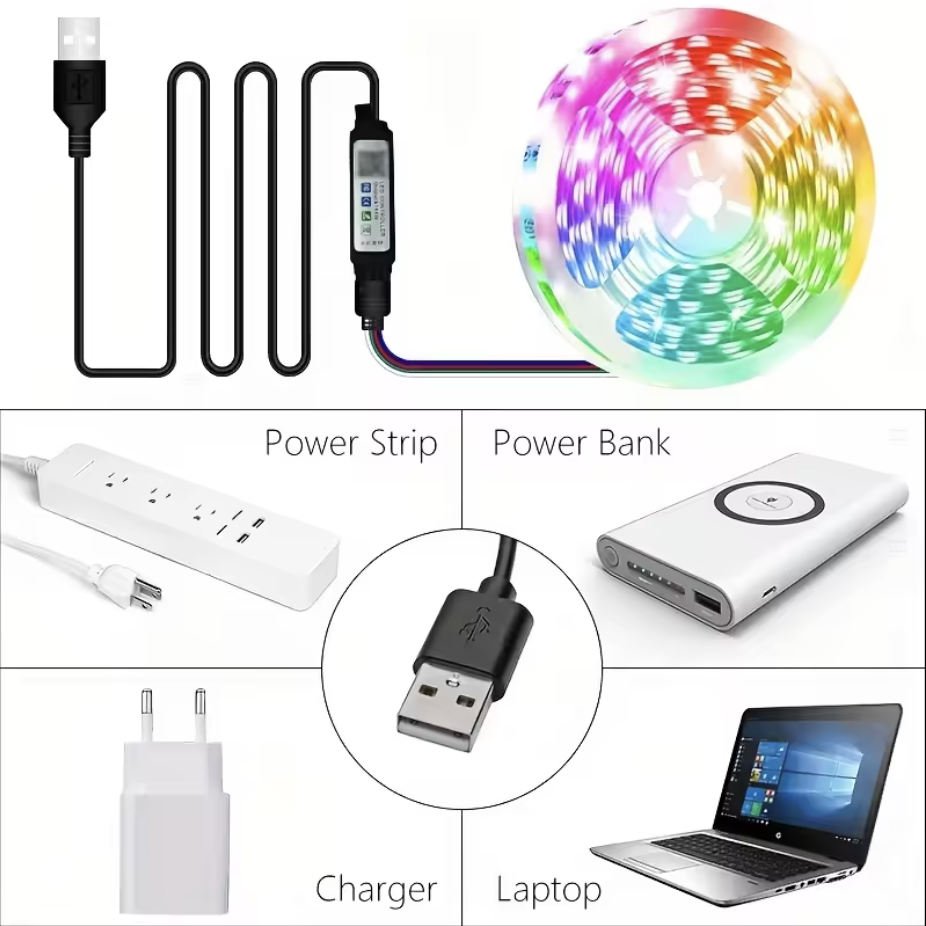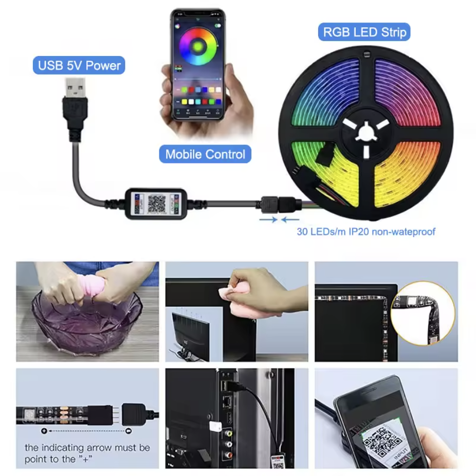 USB RGB LED Strip Light+ Bluetooth Control 5V 5050 30Leds Smart Flexible Tape Waterproof Phone App Control TV Backlight
