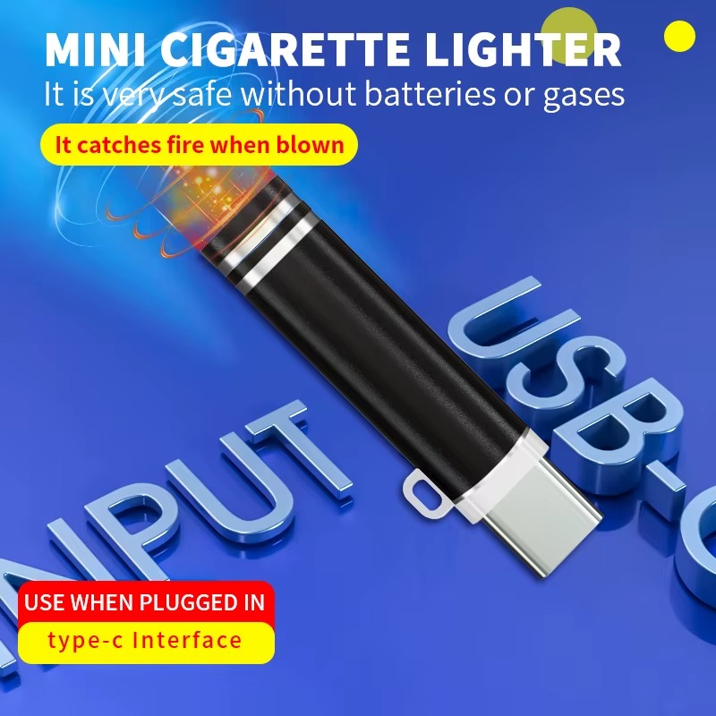 Experience innovation and convenience with the Type-C Mobile Cigarette Lighter, a compact, flameless, and portable solution for outdoor and everyday use. Designed to work directly from your smartphone’s Type-C port, this mini lighter heats up using your phone’s power — no gas, no flame, and no need for refills. The intelligent air-blowing ignition system activates the heating coil when air is blown onto it, glowing red hot for quick and efficient lighting. Crafted from durable aluminum alloy, it’s resistant to wind, safe to use, and automatically shuts off after 10 seconds to prevent overheating. Ideal for travelers, drivers, and outdoor enthusiasts, this stylish and eco-friendly lighter ensures reliable performance wherever you go.