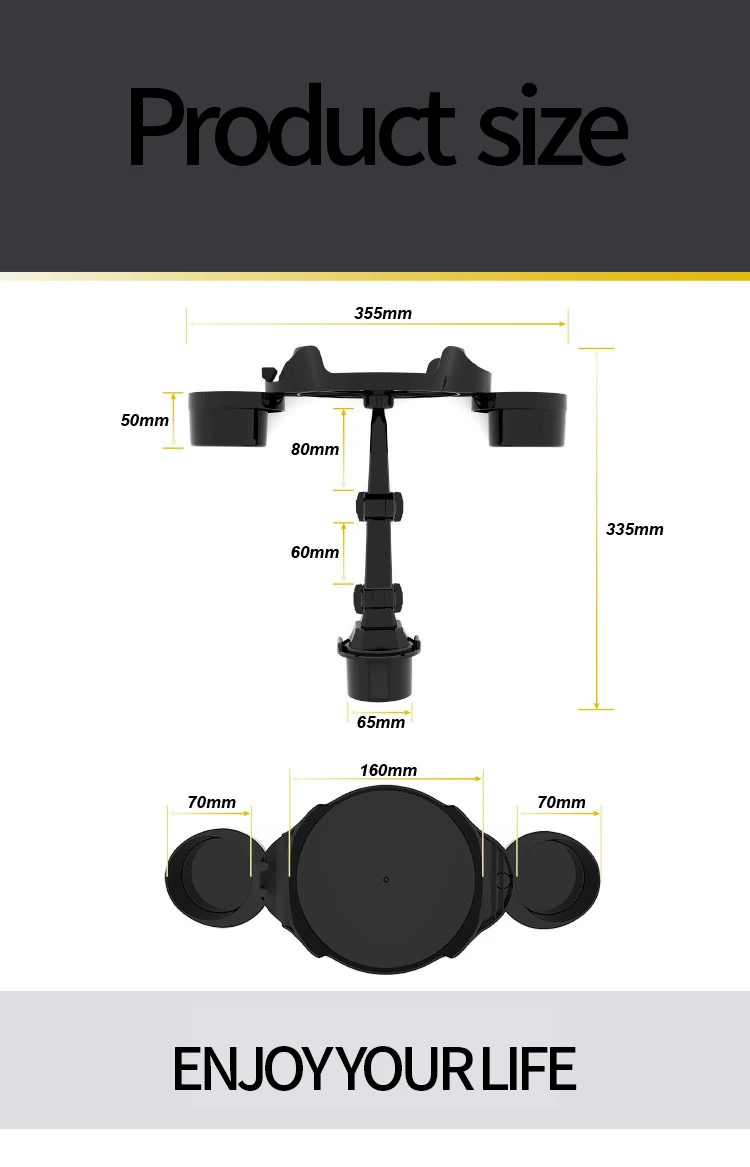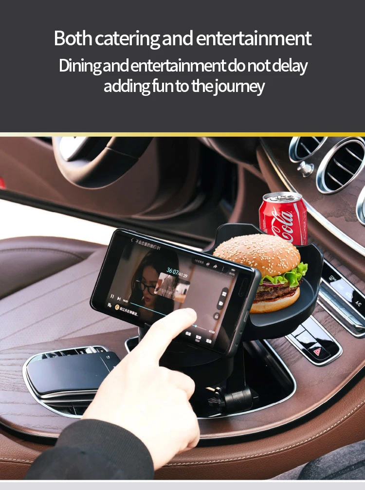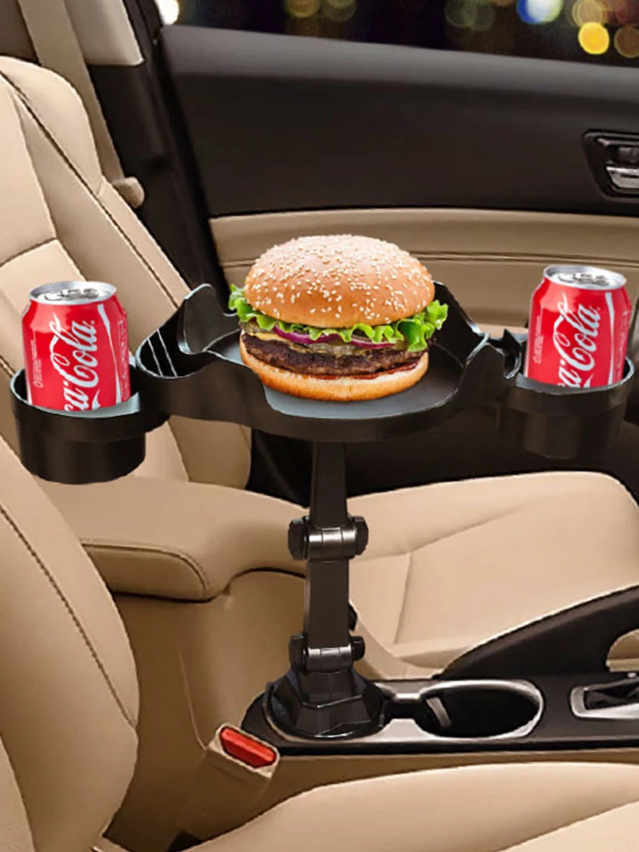 Universal Portable Car Cup Holder Attachable Meal Tray Expanded Table Desk 360 Rotatable Adjustable Car Food Tray Cup Holder