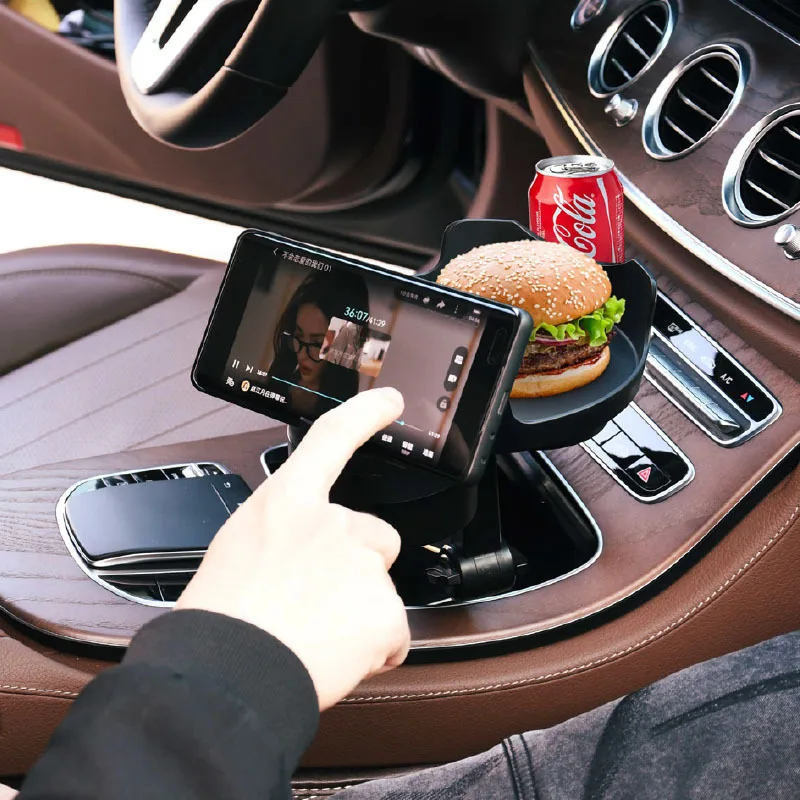 Universal Portable Car Cup Holder Attachable Meal Tray Expanded Table Desk 360 Rotatable Adjustable Car Food Tray Cup Holder