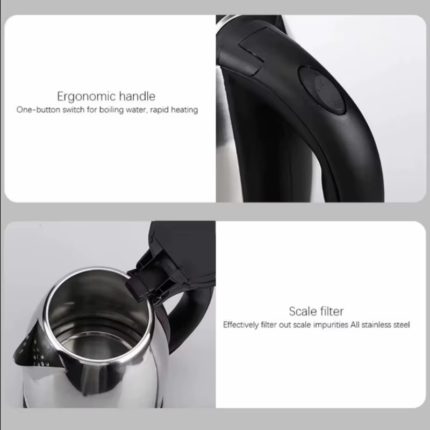 1.8L stainless steel electric kettle with fast boiling, automatic shut-off, and ergonomic handle — perfect for tea, coffee, and daily hot water needs at home or office.