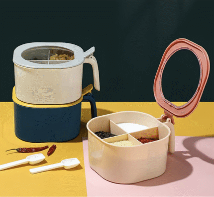 Four-Grid Seasoning Box – Spice Jar Set with Tray & Covers