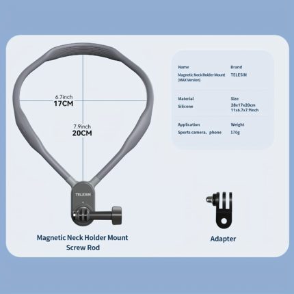 Experience hands-free filming with the Telesin Taixun Magnetic Neck Hanger, designed for GoPro11/10/9 and DJI Action3/4 cameras. This ergonomic neck hanger offers secure, stable mounting for cycling and first-person shots. Its powerful magnets ensure your device stays in place, providing convenience and versatility for dynamic filming. Capture every moment effortlessly with this essential camera accessory.