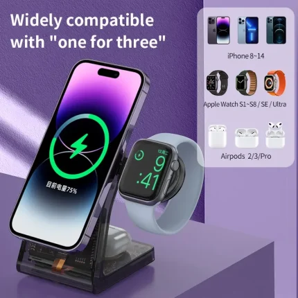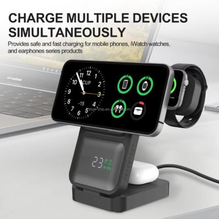Experience seamless charging with the 3 in 1 LED Light Magnetic Wireless Charger. Effortlessly power your iPhone 17 to 12 Pro Max, iWatch 9 to 7, and AirPods Pro. Enjoy fast, efficient charging with a sleek design and LED indicators for status updates. Keep your devices organized and ready with this versatile, space-saving solution.