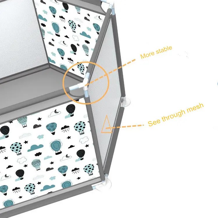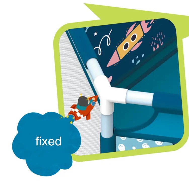 - You can get a playpen for your child that is 100% free of harmful substances and made of high-quality material, which can be used from the age of 6 months and can even be played with by several small children at the same time. The playpen is completely safe, takes up little space to store and can be assembled and disassembled in the blink of an eye, so you can take it with you wherever you go, even on a vacation. The playpen is decorated with a spaceship pattern, which gives it a fashionable look and looks good in any child’s room.