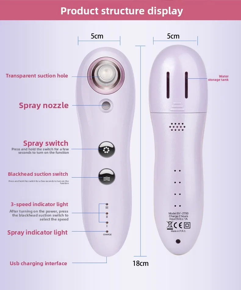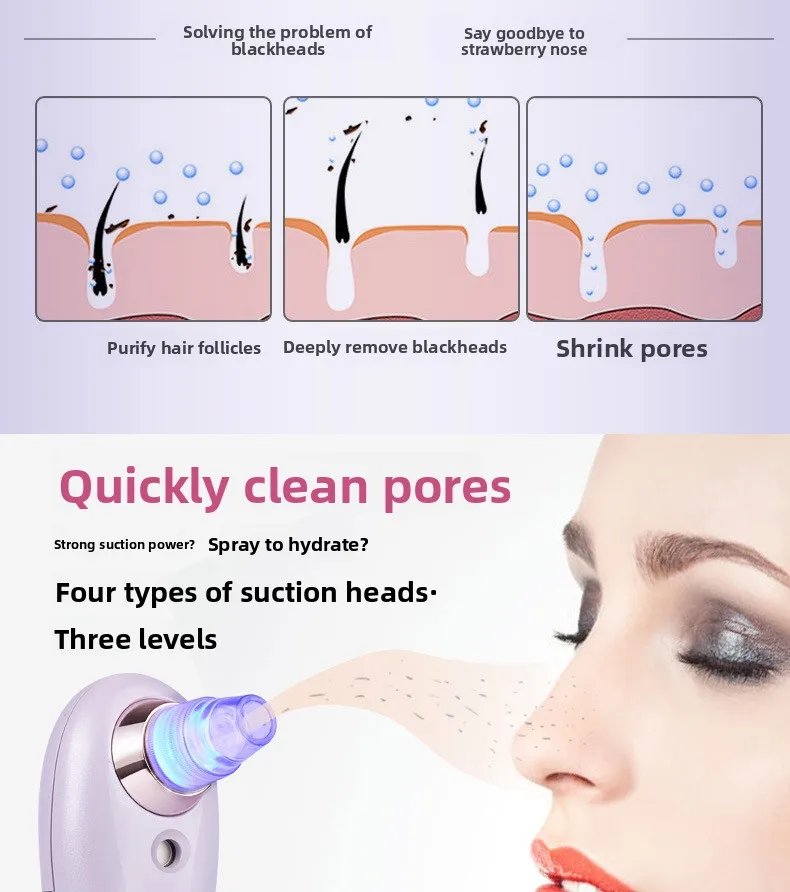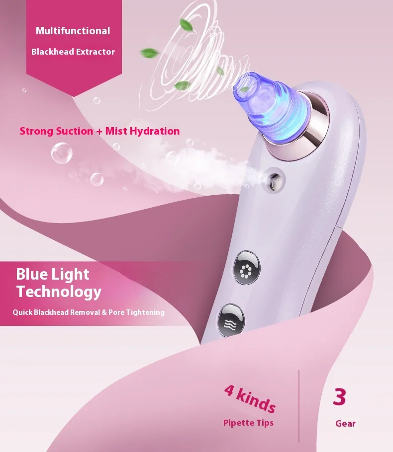 • Customizable Suction Strength: Three intensity levels to suit sensitive, normal, or oily skin types.