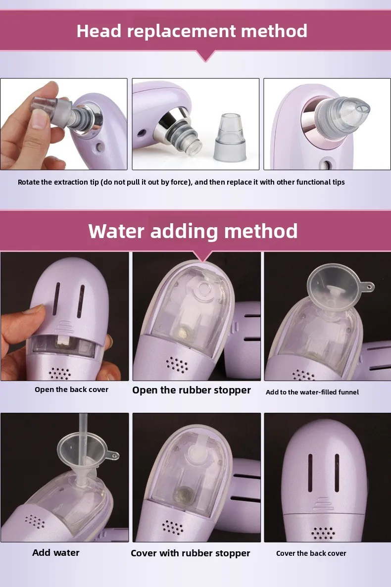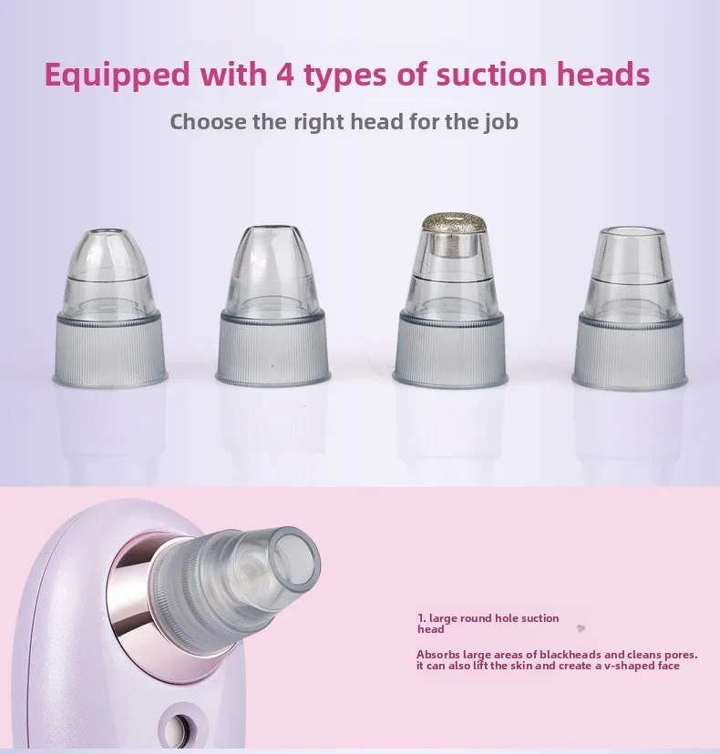 • Multiple Attachments: Comes with four interchangeable suction heads to target different areas of the face.
