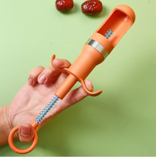 The Cherry Core Remover is a multifunctional kitchen tool designed to quickly and safely remove pits from cherries, jujubes, red dates, hawthorn, and more. With its syringe-style push design, this handheld pitter makes seed removal effortless and requires minimal force. Made from food-grade ABS plastic and durable stainless steel, it is sturdy, rust-resistant, and built for long-term use. The streamlined design allows for quick cleaning—simply unlock and rinse under water or place in the dishwasher. Ideal for home cooks, bakers, pastry chefs, and anyone who wants a faster, safer, and healthier way to enjoy cherries and other fruits without pits.