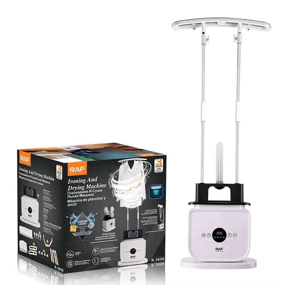 RAF R.3050 1400W digital iron dryer with smart controls, inflatable garment design, and fast drying performance for home and travel use.